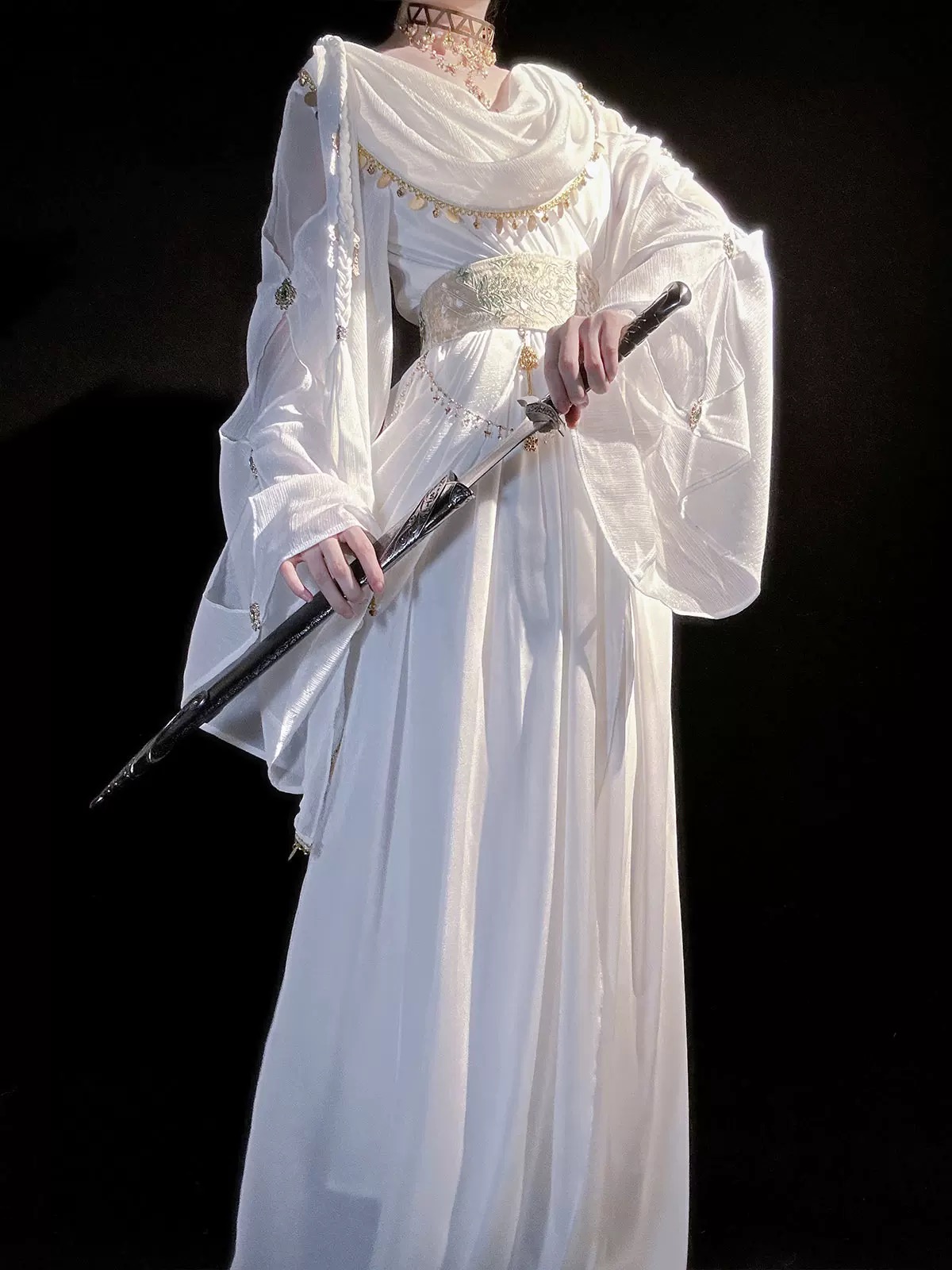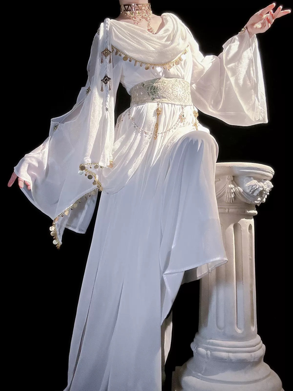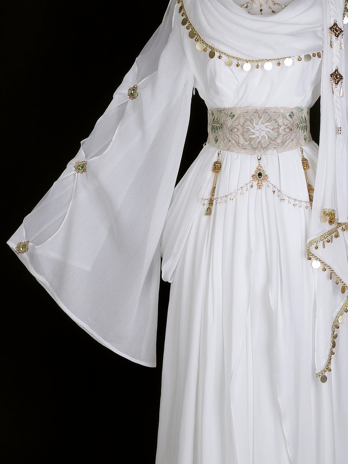 • Material : Waistband: Jacquard fabric / Dress: Stretch chiffon / Sleeves: Bright silk crepe / Lining: 100D four-way stretch