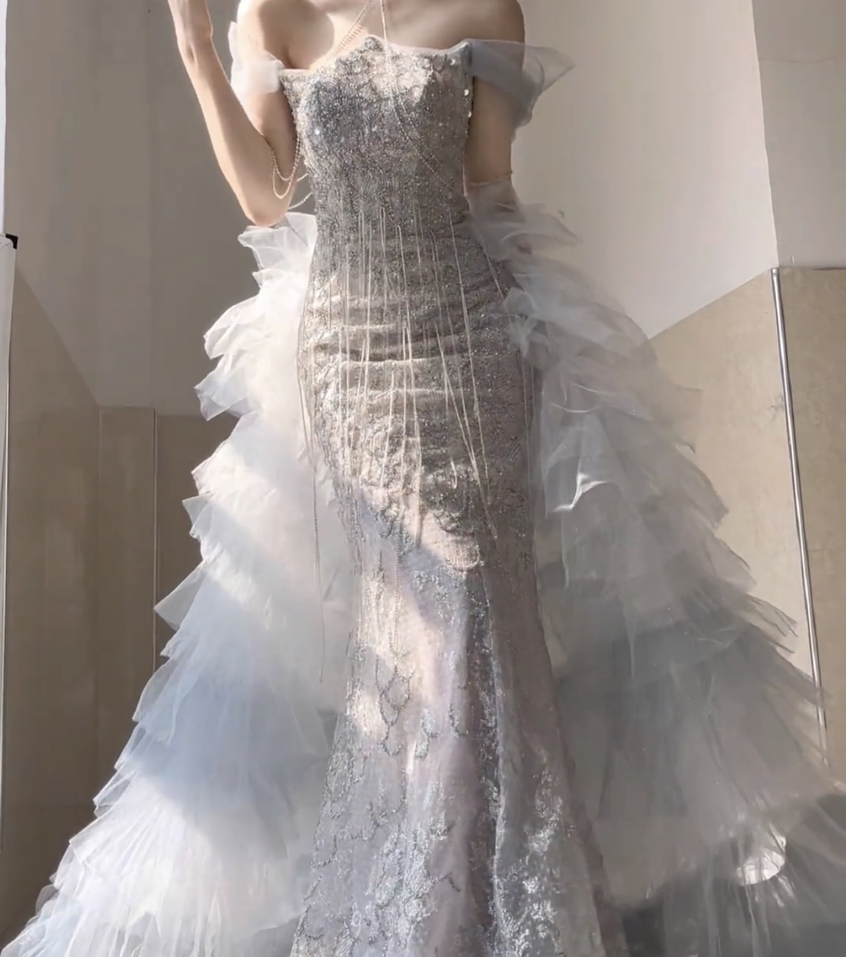Dress edited according to measurements.