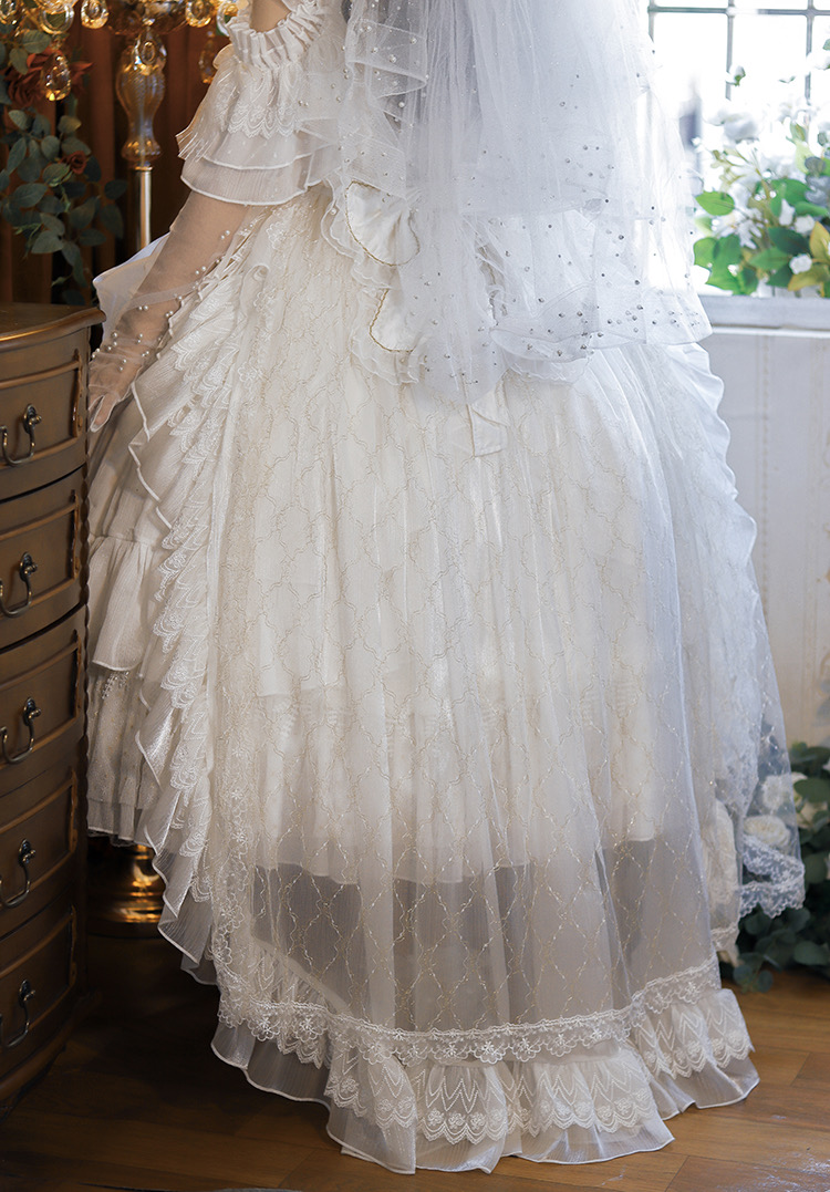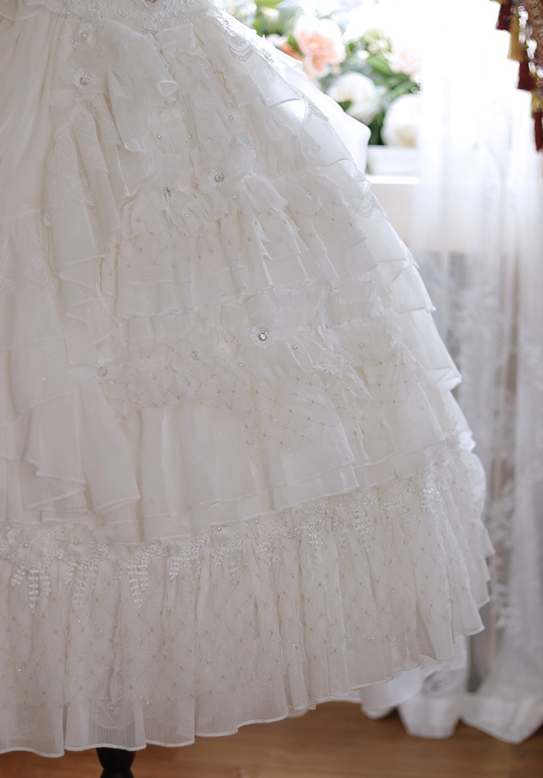 • Material : Jacquard fabric pattern, Fabric silver silk chiffon,