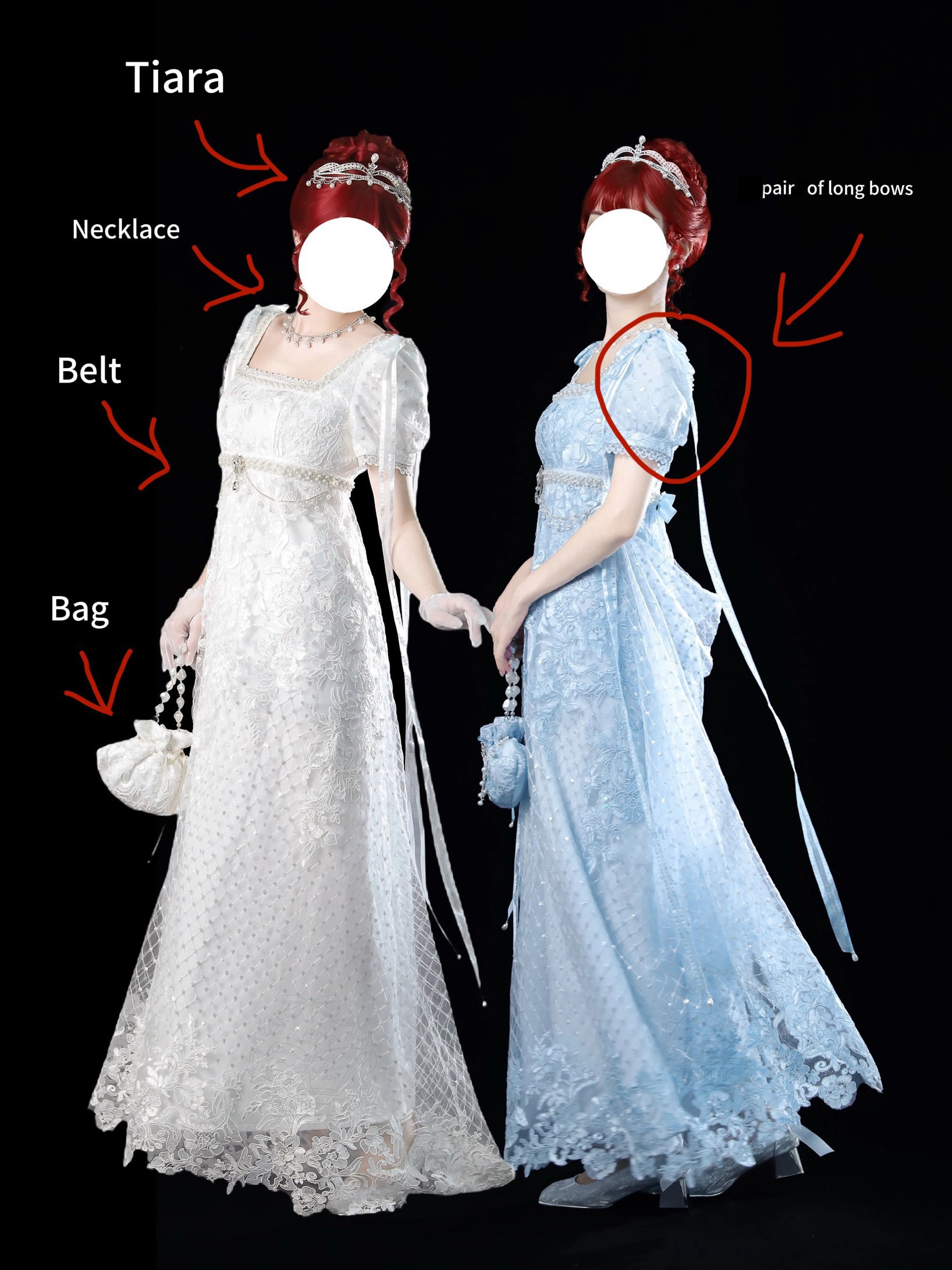 Dress included : Dress + Belt + pair of long bows + Small bow