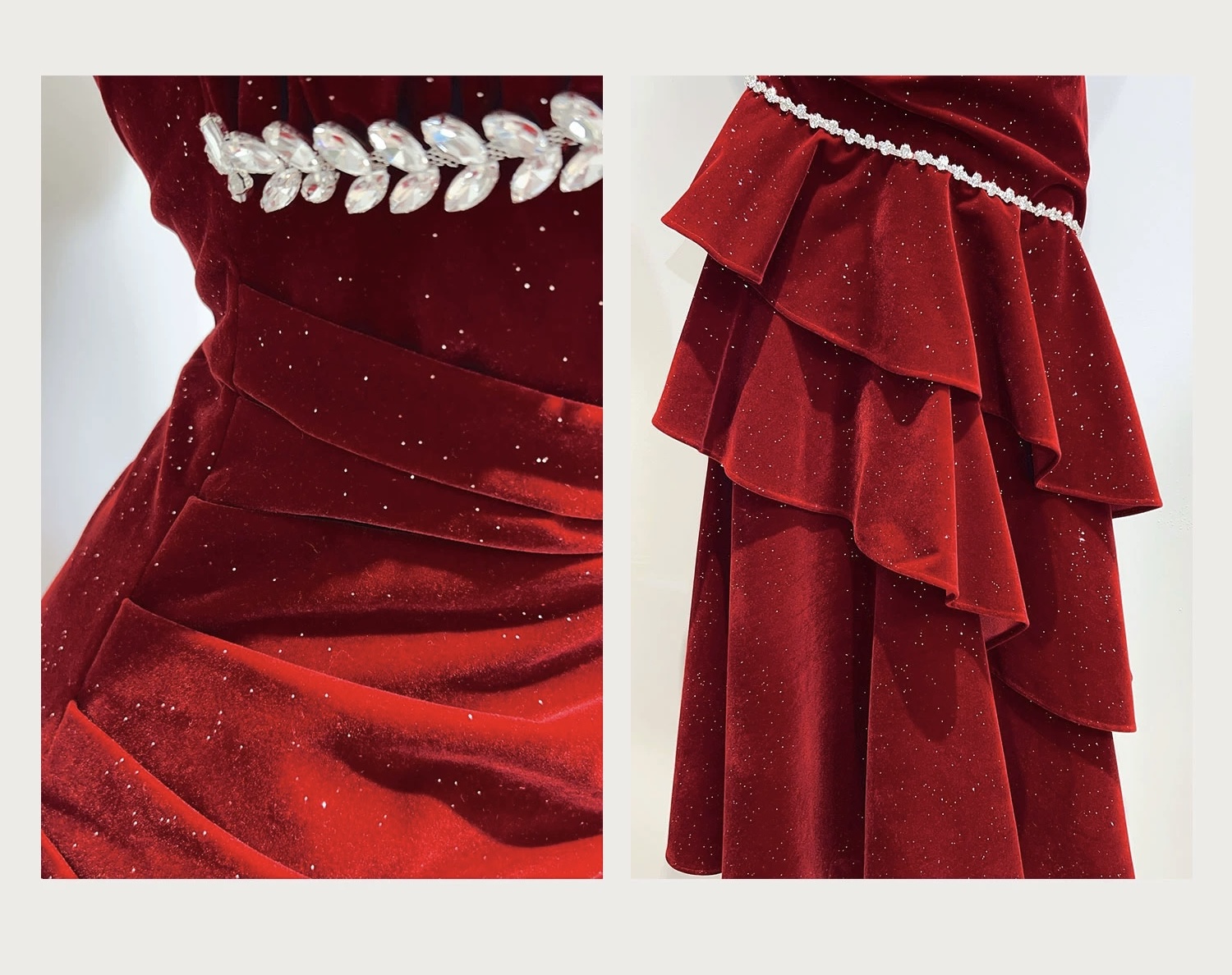 Selected dark red velvet fabric sprinkled with silver powder