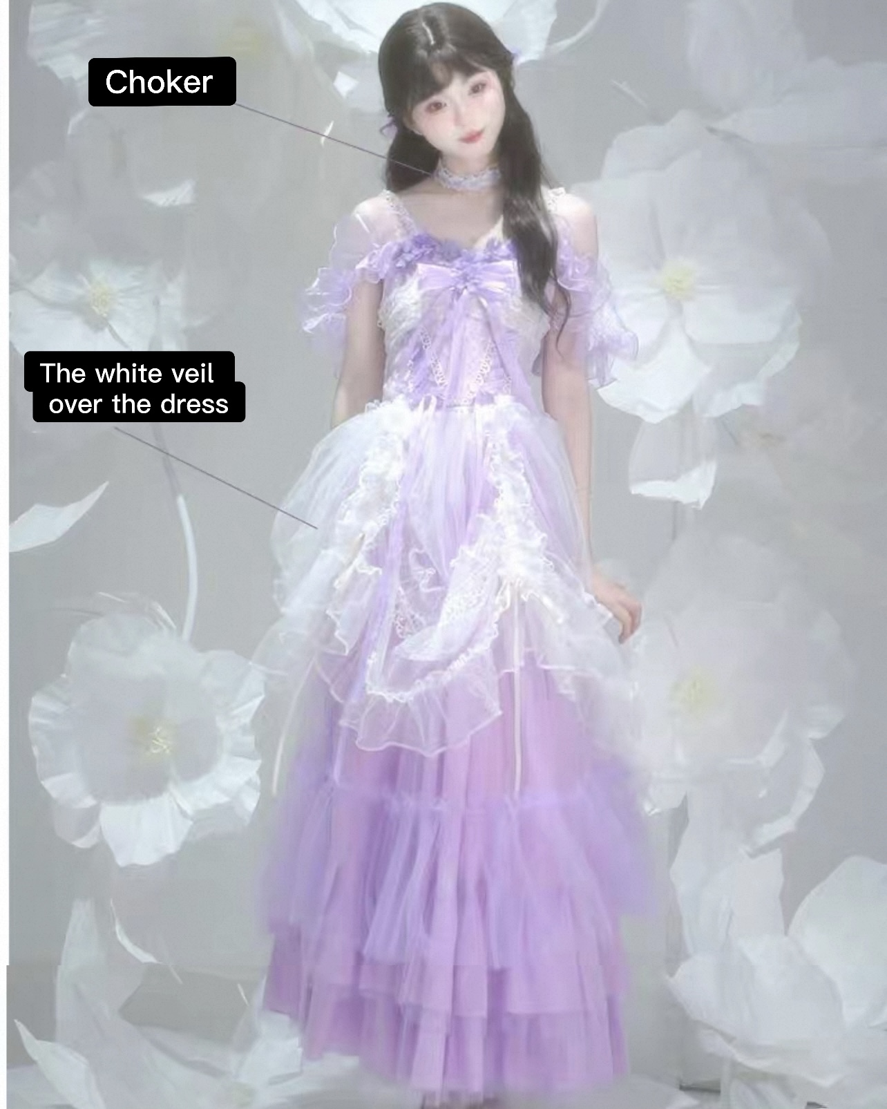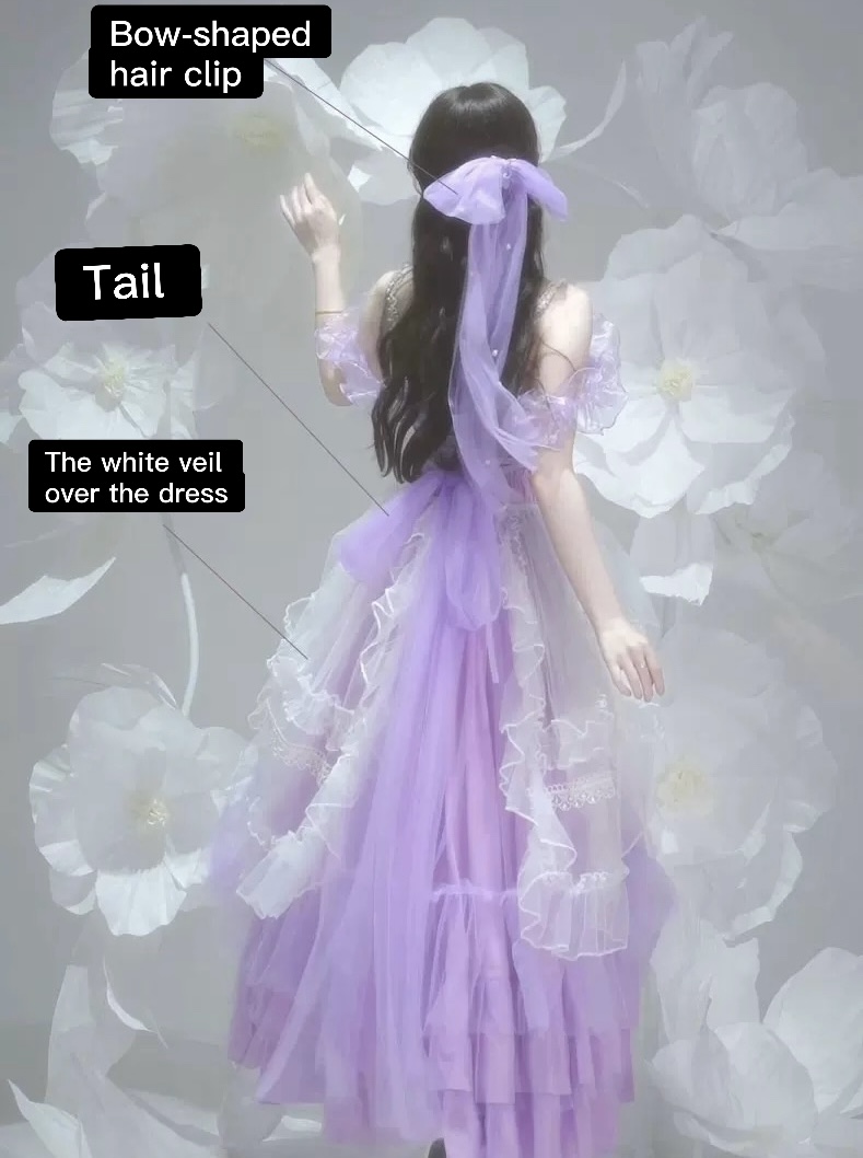 Full Set : Dress + Choker + Tail + 20 Flowers Diy + The white veil over the dress + Bow-shaped hair clip